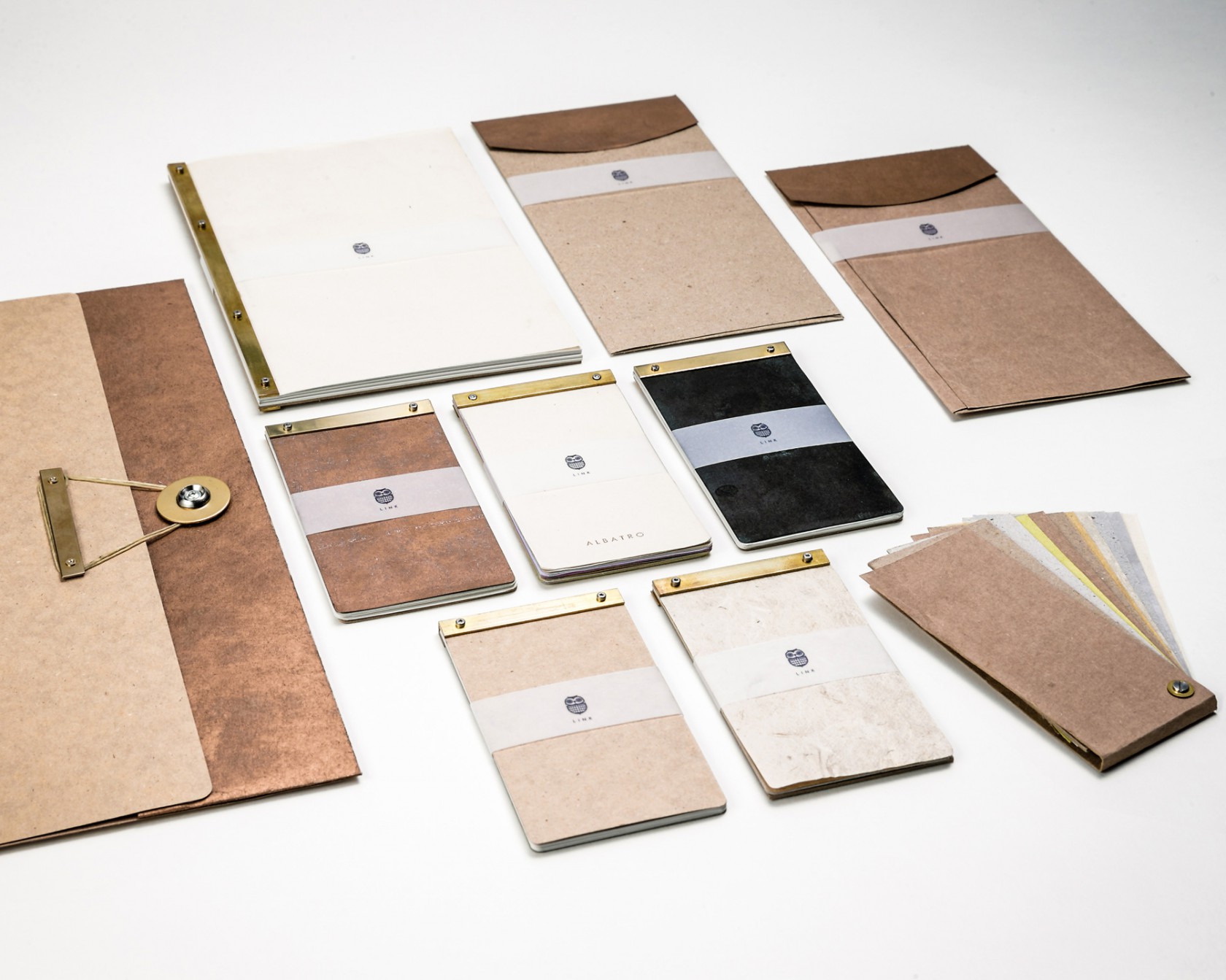 The stationery can be chose some kind of papers from Myanmar and put together with brass tool.